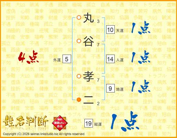 丸谷孝二さんの総運は19画の1点!