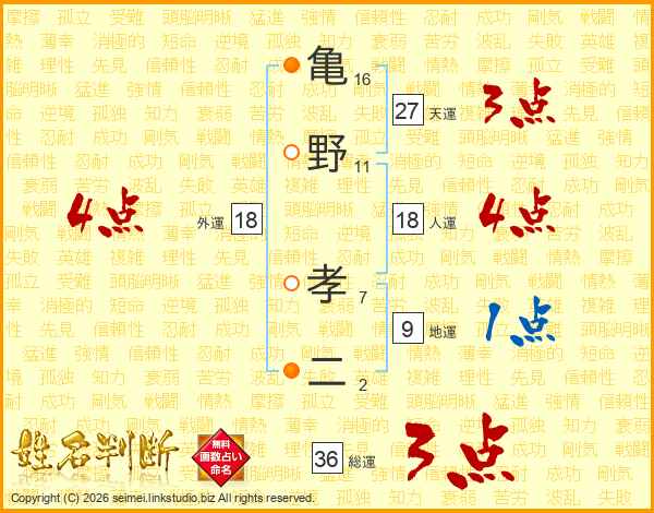 亀野孝二さんの天運は27画の3点!