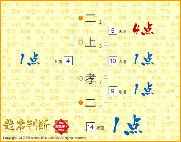二上孝二さんの総運は14画の1点!