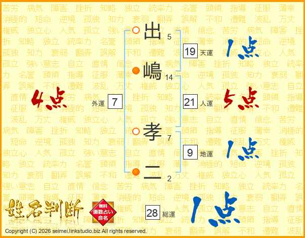 出嶋孝二さんの総運は28画の1点!