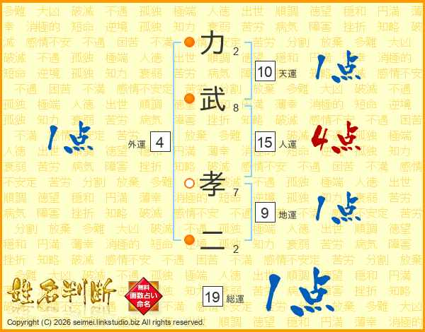 力(2画)武(8画) 孝(7画)二(2画)