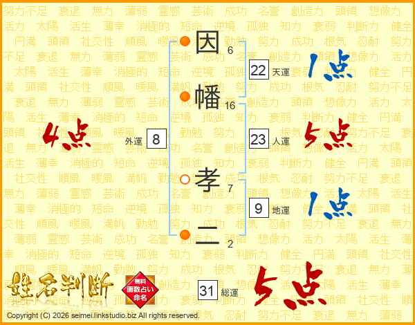 因幡孝二さんの総運は31画の5点!