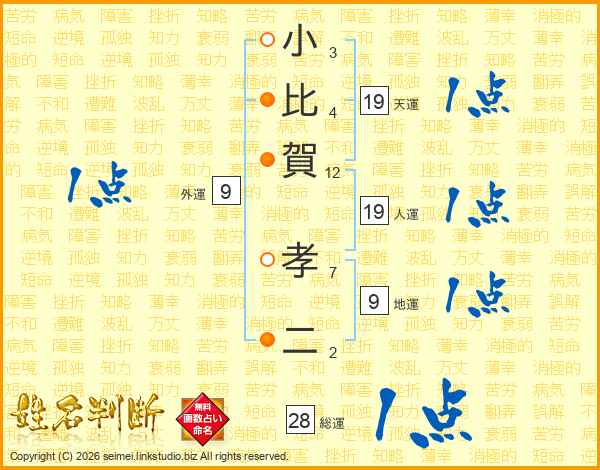 小(3画)比(4画)賀(12画) 孝(7画)二(2画)