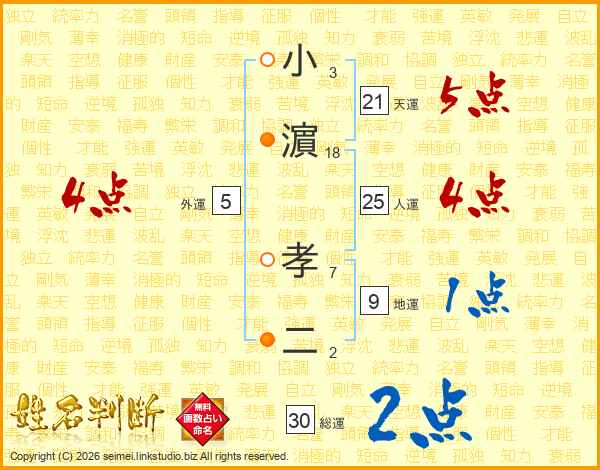 小(3画)濵(18画) 孝(7画)二(2画)