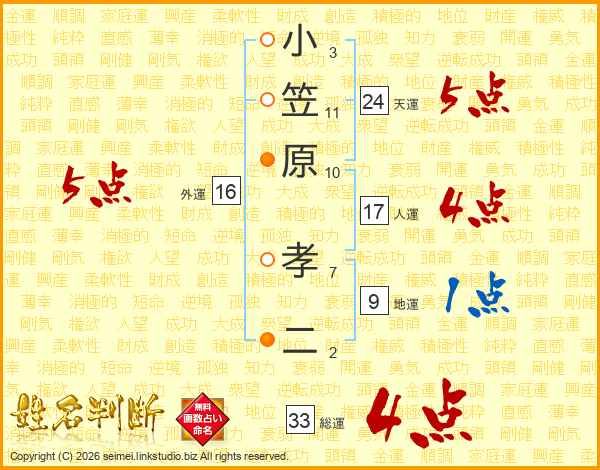 小笠原孝二さんの総運は33画の4点!