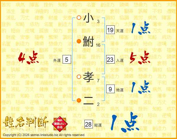 小鮒孝二さんの人運は23画の5点!