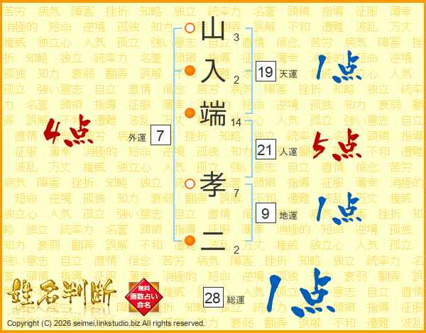 山入端孝二さんの人運は21画の5点!