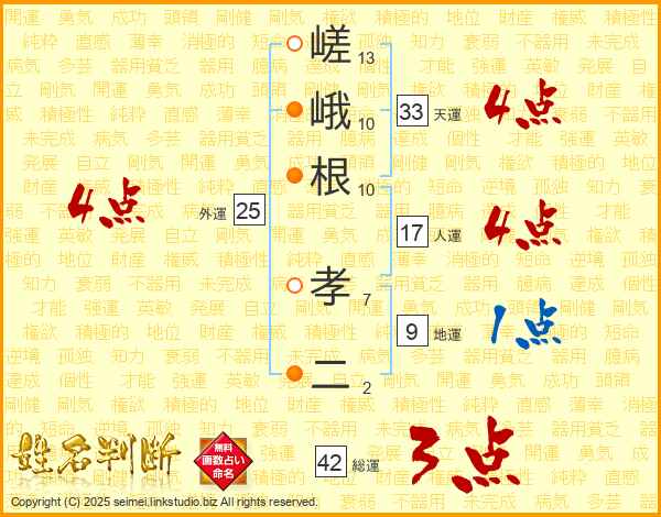 嵯峨根孝二さんの天運は33画の4点!