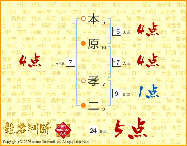 本原孝二さんの総運は24画の5点!