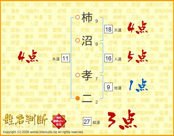 柿沼孝二さんの天運は18画の4点!