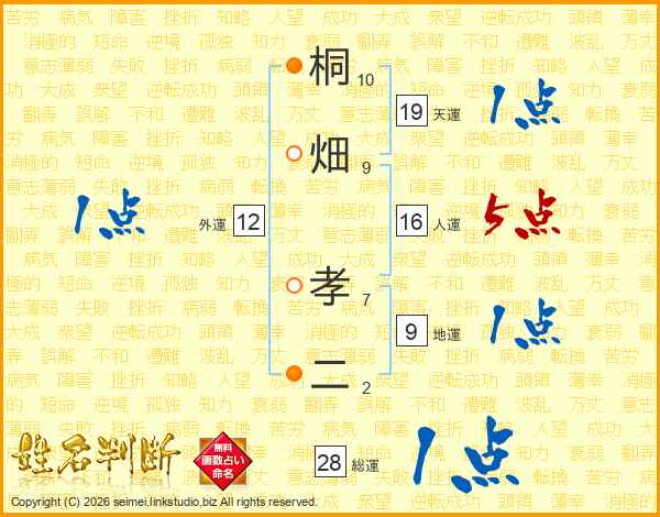 桐(10画)畑(9画) 孝(7画)二(2画)