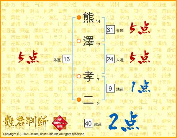 熊澤孝二さんの天運は31画の5点!