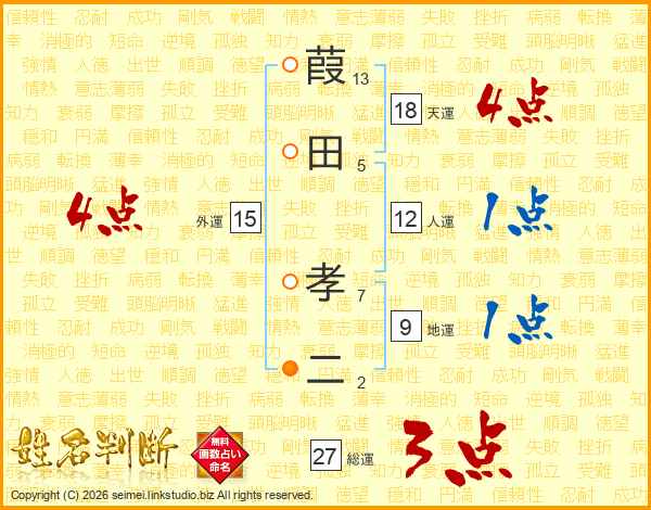葭田孝二さんの総運は27画の3点!