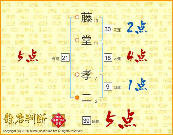 藤堂孝二さんの総運は39画の5点!