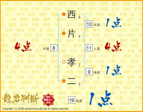 西片孝二さんの人運は11画の4点!