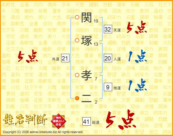 関塚孝二さんの外運は21画の5点!
