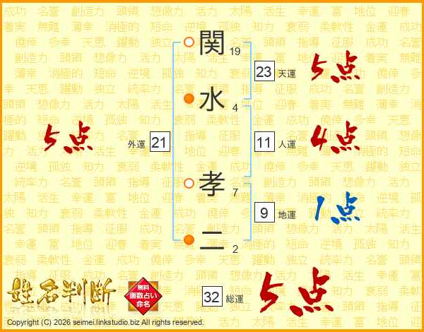 関水孝二さんの総運は32画の5点!