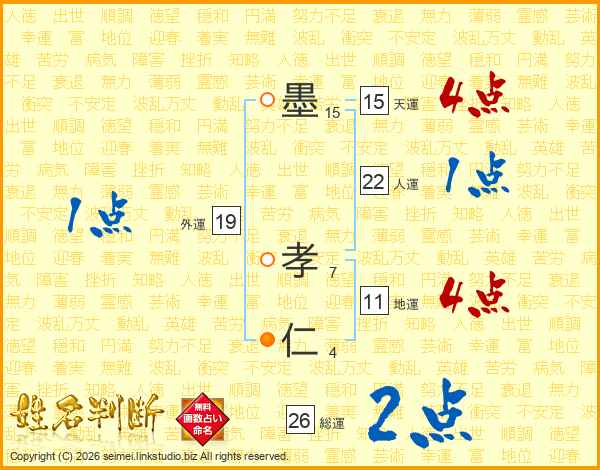 墨孝仁さんの総運は26画の2点!