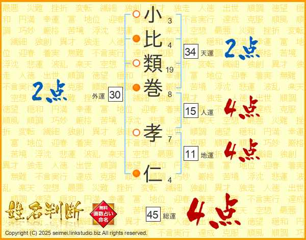 小比類巻孝仁さんの総運は45画の4点!