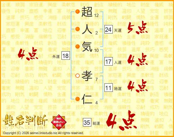超人気孝仁さんの総運は35画の4点!