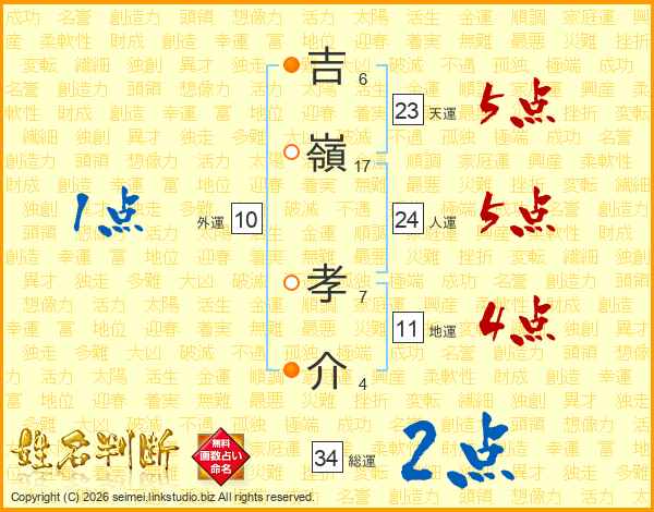 吉嶺孝介さんの天運は23画の5点!