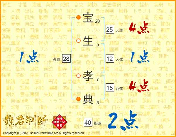 宝生孝典さんの総運は40画の2点!