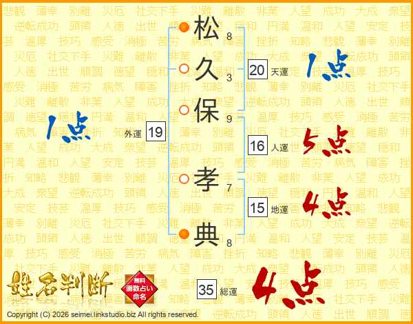 松(8画)久(3画)保(9画) 孝(7画)典(8画)