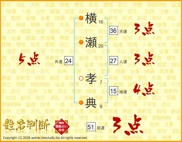 横瀬孝典さんの総運は51画の3点!
