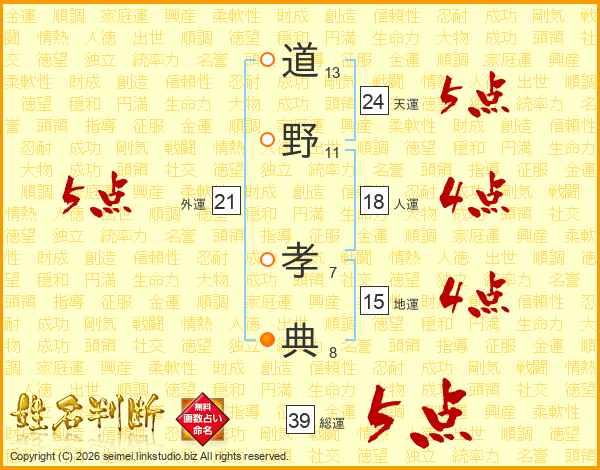 道野孝典さんの総運は39画の5点!