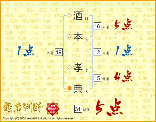 酒本孝典さんの総運は31画の5点!