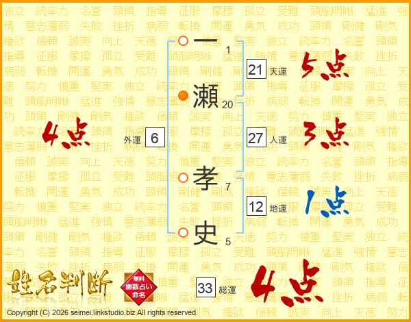 一瀬孝史さんの総運は33画の4点!