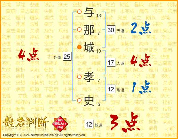 与那城孝史さんの人運は17画の4点!