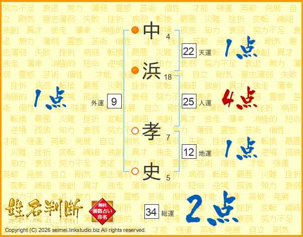 中浜孝史さんの人運は25画の4点!