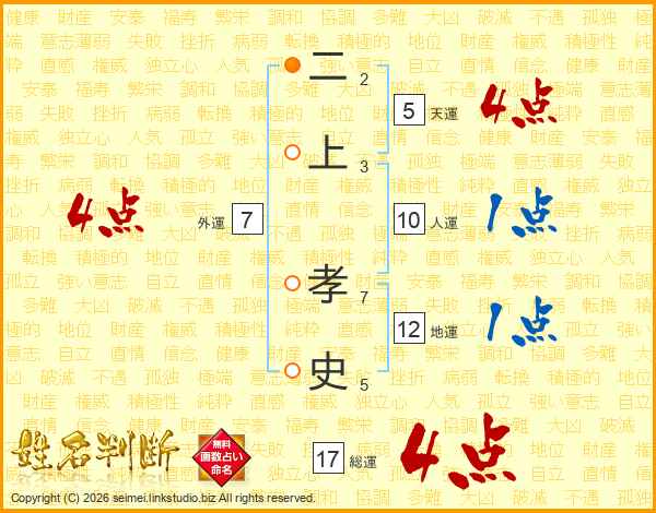 二上孝史さんの総運は17画の4点!