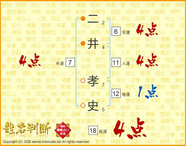 二井孝史さんの人運は11画の4点!