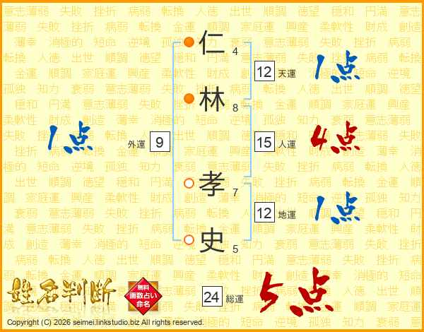 仁林孝史さんの総運は24画の5点!