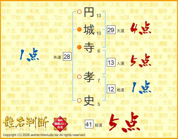 円城寺孝史さんの総運は41画の5点!