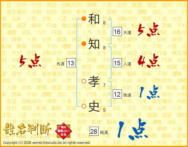和知孝史さんの総運は28画の1点!