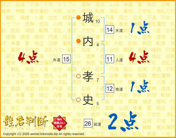 城(10画)内(4画) 孝(7画)史(5画)