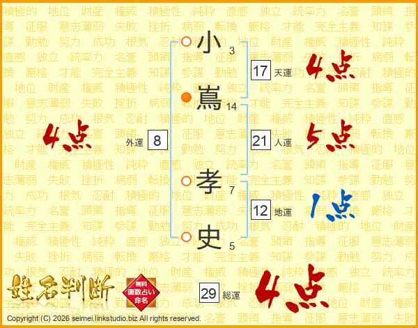 小嶌孝史さんの総運は29画の4点!