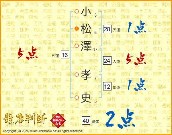 小松澤孝史さんの人運は24画の5点!