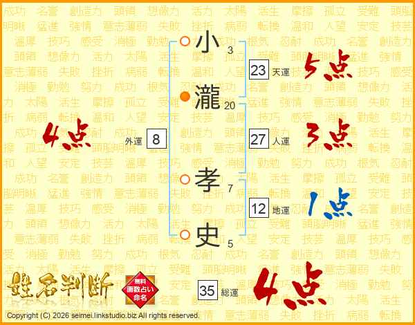 小瀧孝史さんの総運は35画の4点!