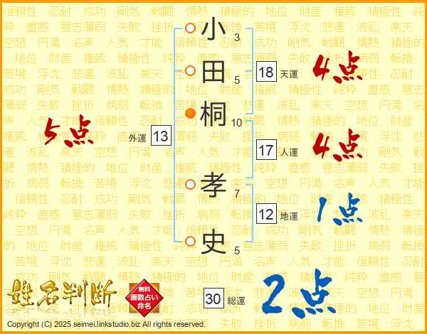 小(3画)田(5画)桐(10画) 孝(7画)史(5画)
