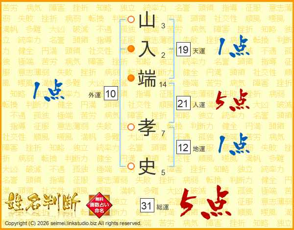 山入端孝史さんの総運は31画の5点!