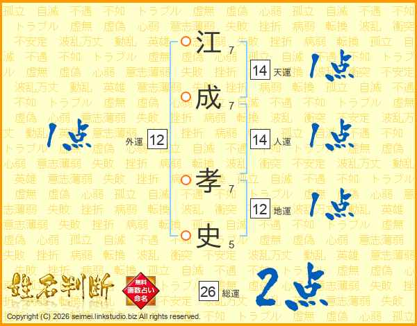 江成孝史さんの人運は14画の1点!