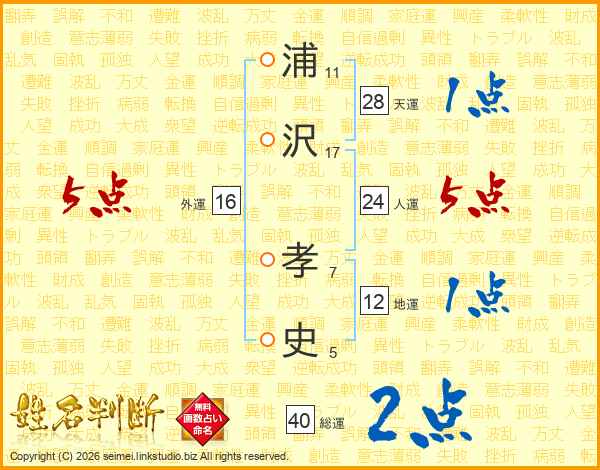 浦沢孝史さんの総運は40画の2点!