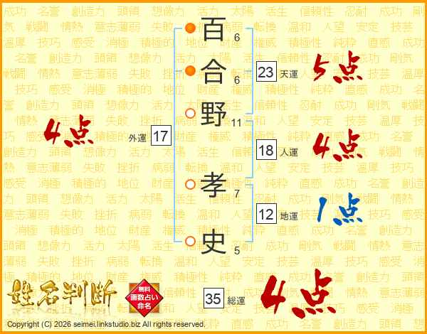百合野孝史さんの総運は35画の4点!