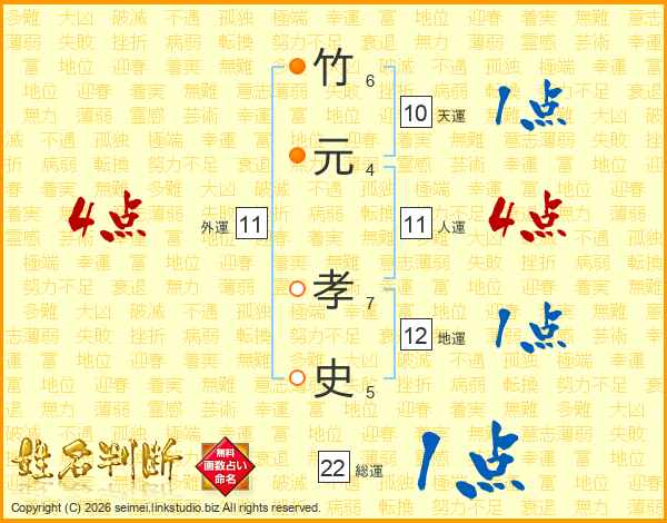 竹元孝史さんの人運は11画の4点!