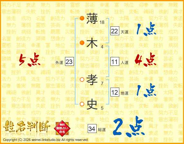 薄(18画)木(4画) 孝(7画)史(5画)