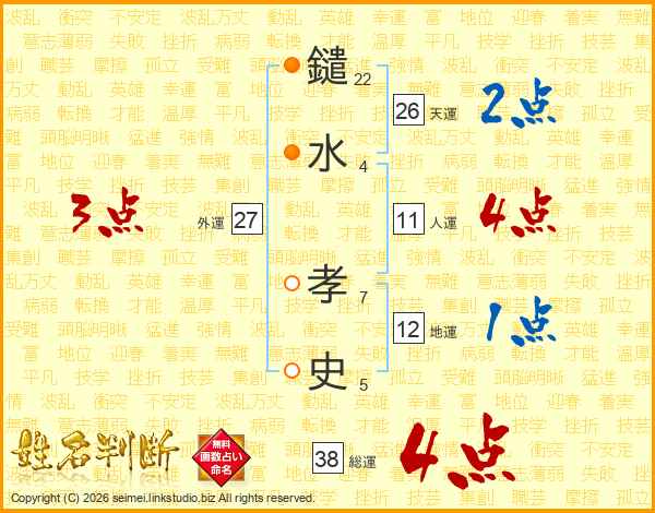 鑓(22画)水(4画) 孝(7画)史(5画)